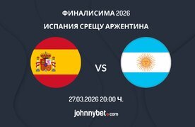 Залози за Финалисима 2026 и залози за мача Аржентина - Испания могат да се направят в платформи като bet365, Betano и Mr Bit, където са налични различни пазари – 1X2, голове, точен резултат, хендикап.