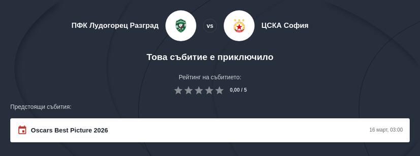 Обявената Лудогорец vs. ЦСКА София дата е 14 март, а началният час е 18:00. Срещата ще се изиграе на Националния стадион „Васил Левски“ в София, като се очаква сериозно присъствие по трибуните и силна атмосфера, характерна за подобен тип дербита.
