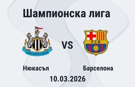 Нюкасъл vs Барселона дата е 10 март 2026 г., с начален час 22:00. Това е първи двубой от елиминационната фаза.