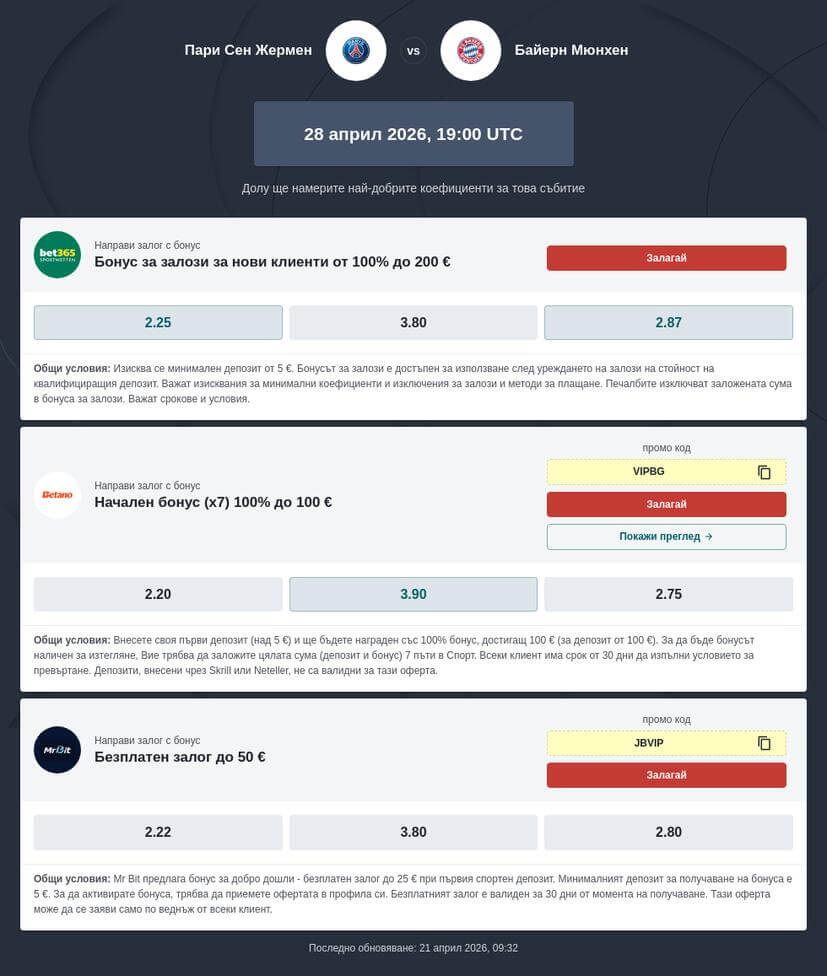 10.1 ✅ Какви са PSG - Байерн коефициенти за залози?