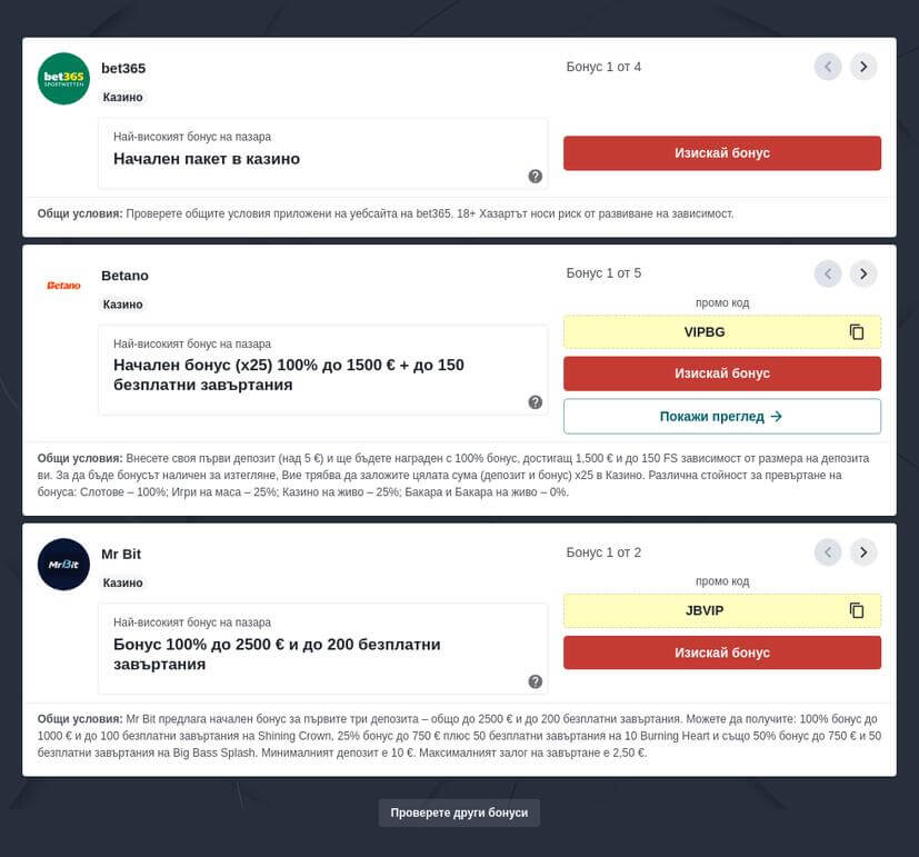 Топ онлайн казино игри в България ще намерите в bet365, Betano.